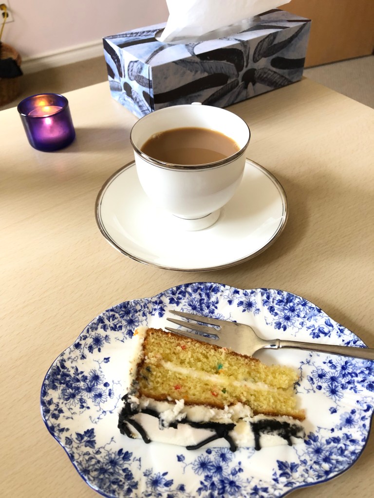 And a piece of cake on your grandmother’s china plate while you write a blog post can also be the best medicine!
